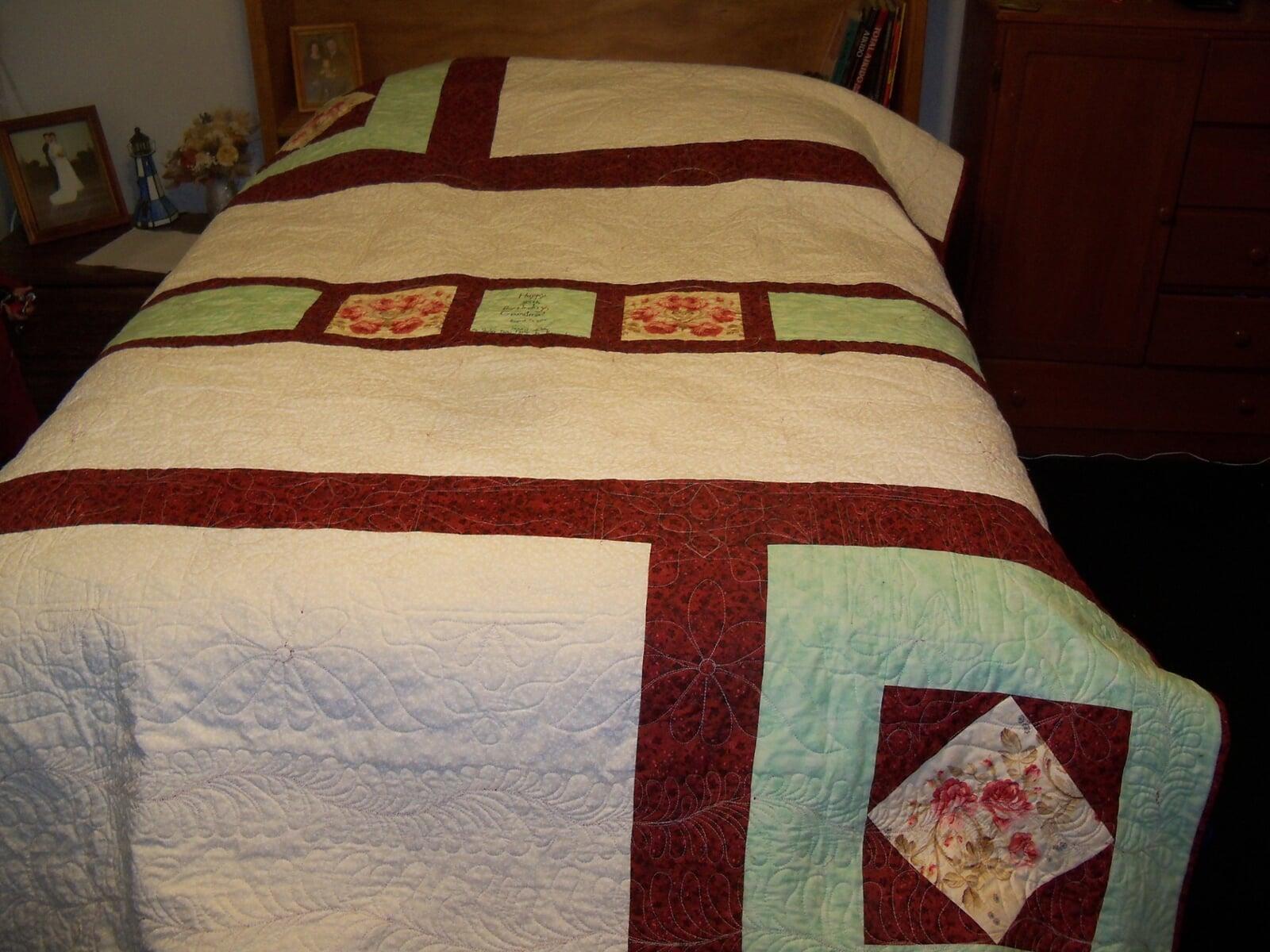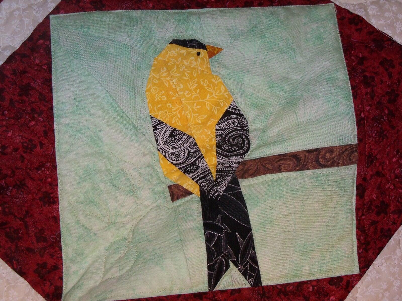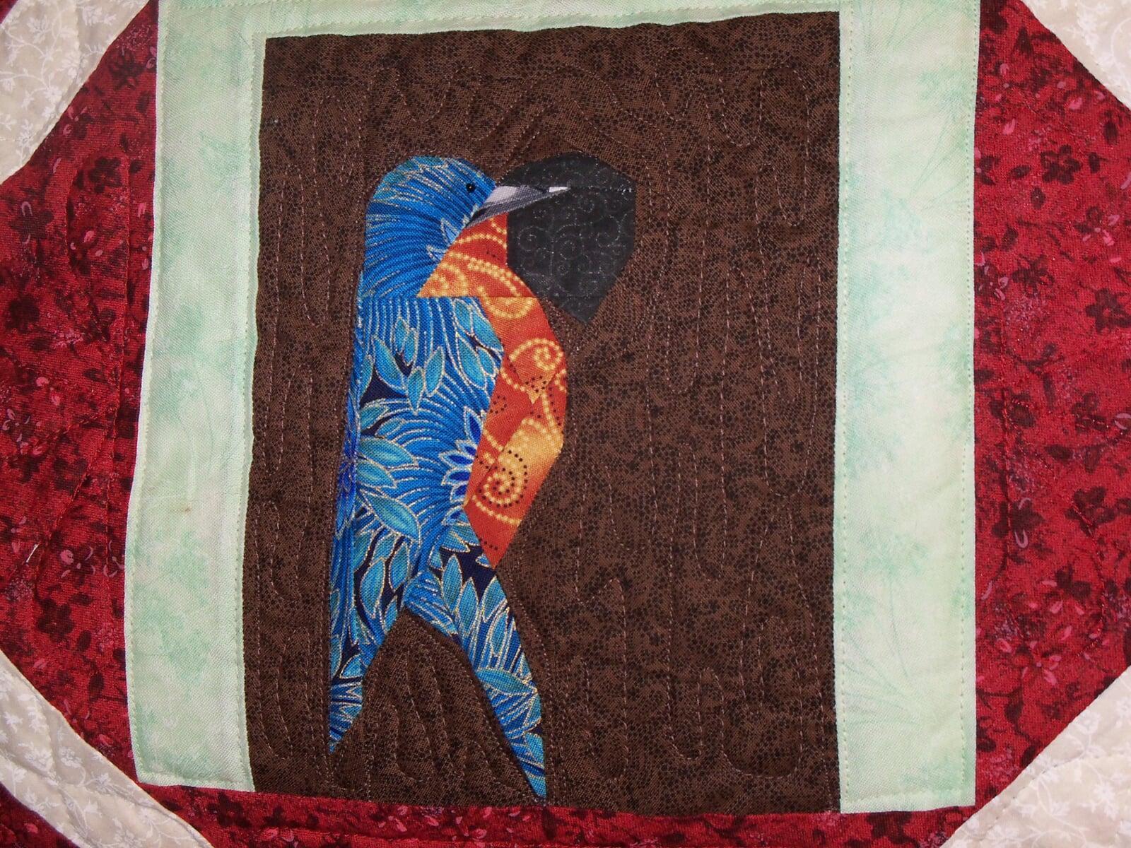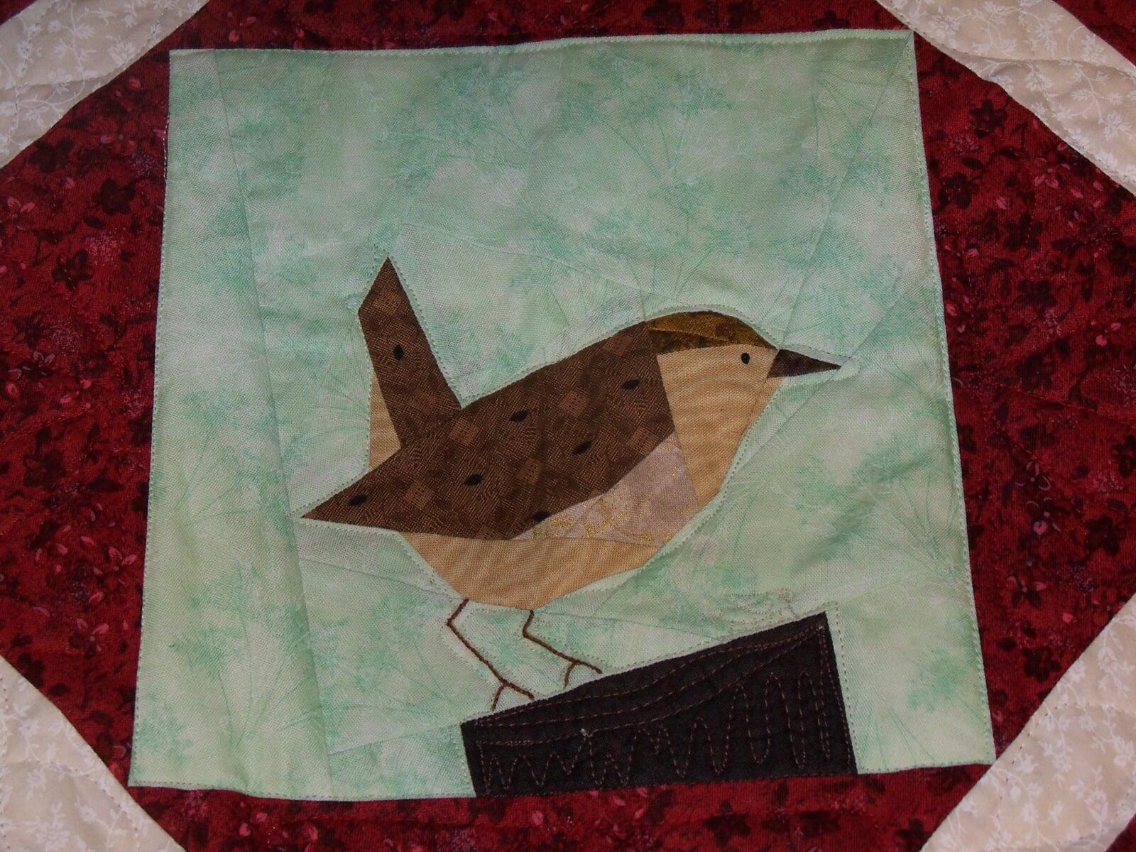 My grandma loved birds, so the year before her 85th birthday I told my mom I wanted to learn paper-piecing to make a bird quilt for Grandma. I found a book with paper-pieced bird patterns, and my mom and I each made one bird block a month. I used my twelve blocks to create this special quilt for my Grandma.